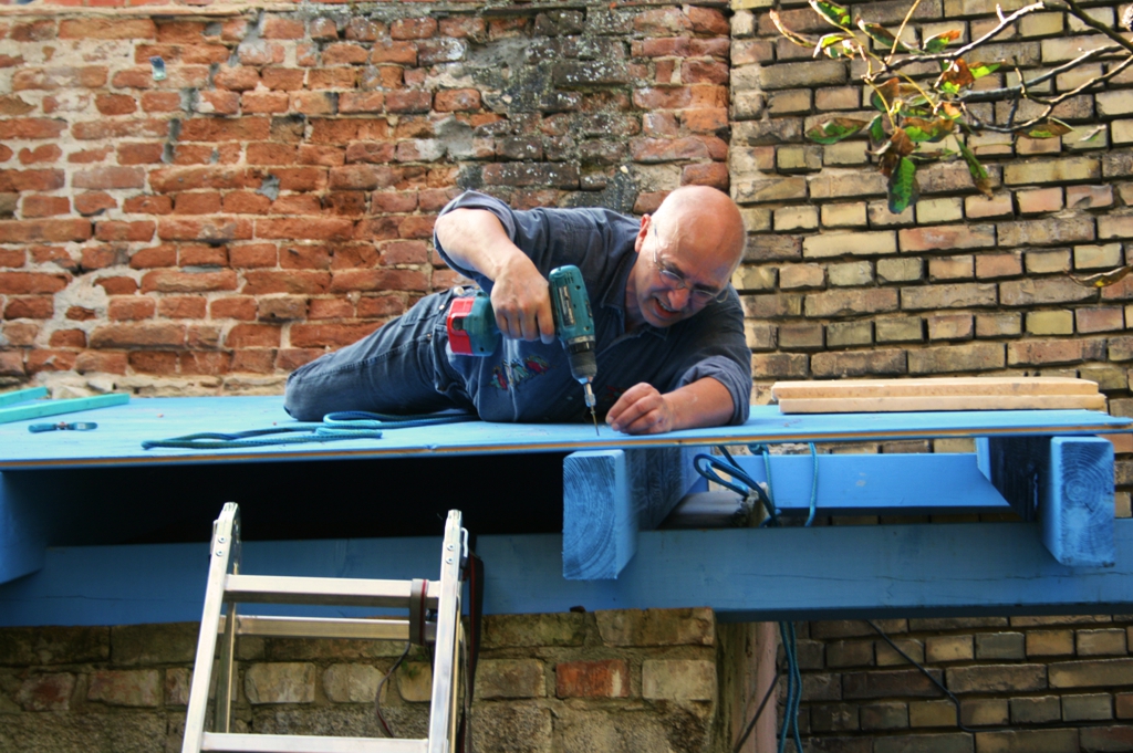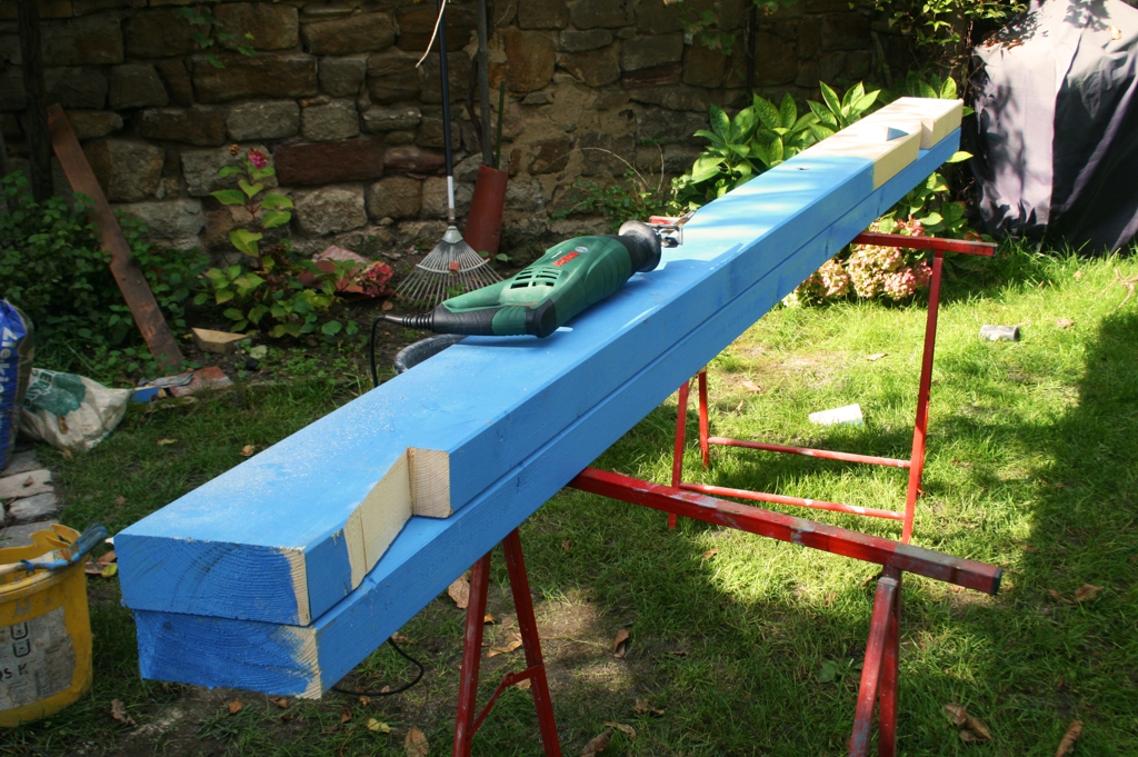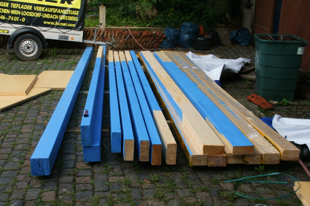 Alle Holzteile wurden vor der Montage mit Holzschutzfarbe behandelt.