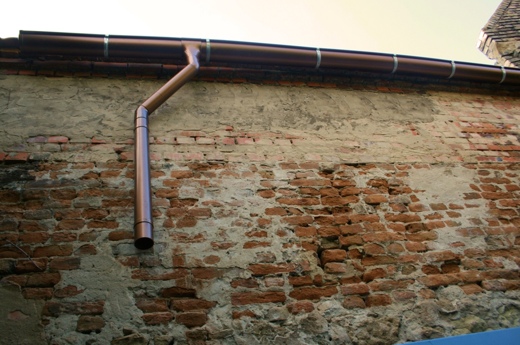Die Dachrinne wurde mit Kunststoffteilen von MARLEY in Kupferton realisiert. Die Kunststoffteile eignen sich ideal für den Selbstbauer.