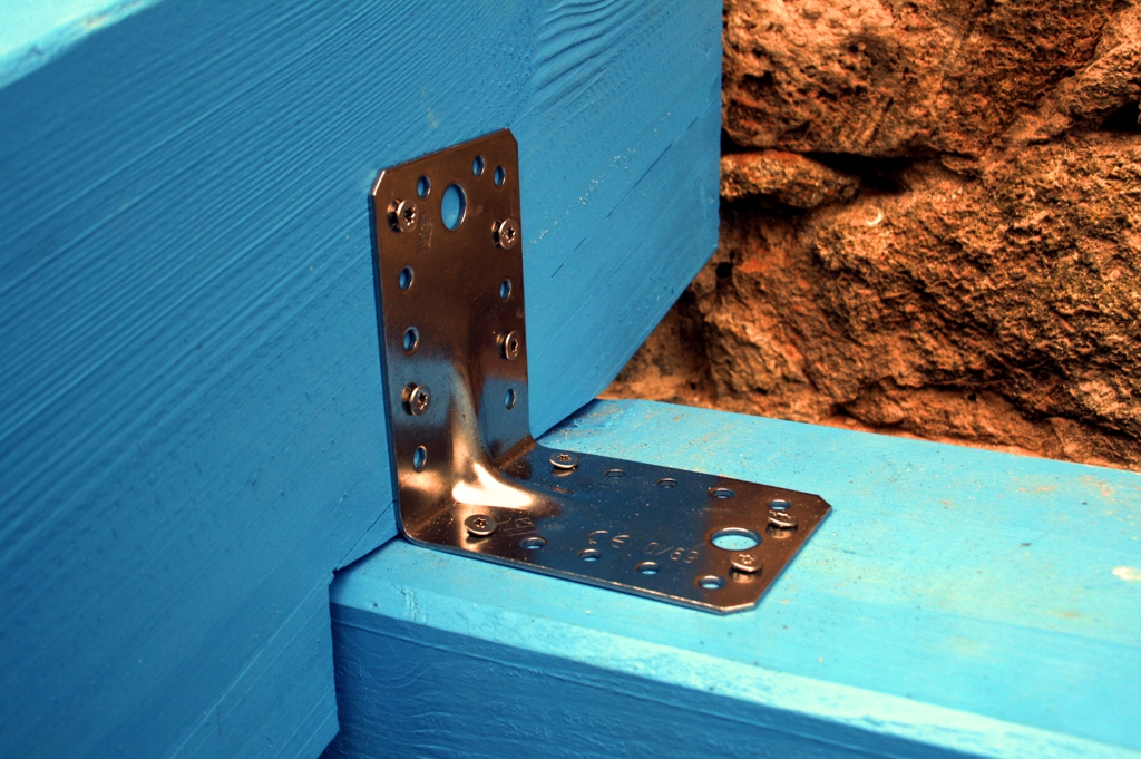 Die Sparren werden mit Edelstahlwinkeln mit den Basisträgern verschraubt.