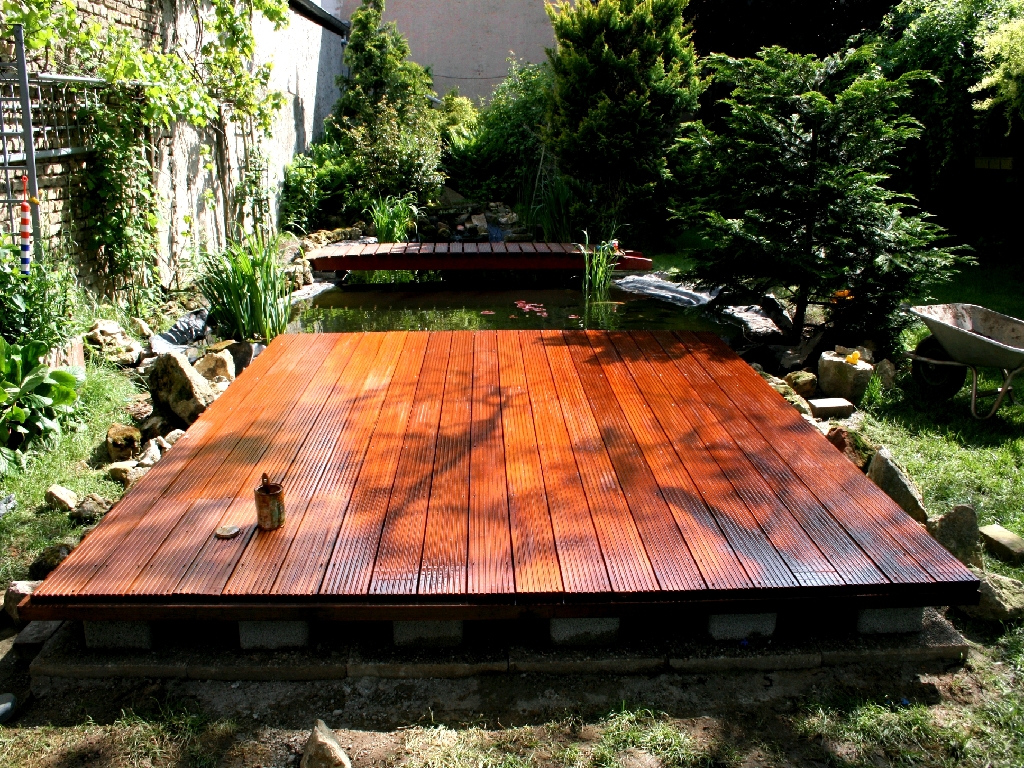 Die Dielen wurden zweimal mit Bangkirai-Öl behandelt.