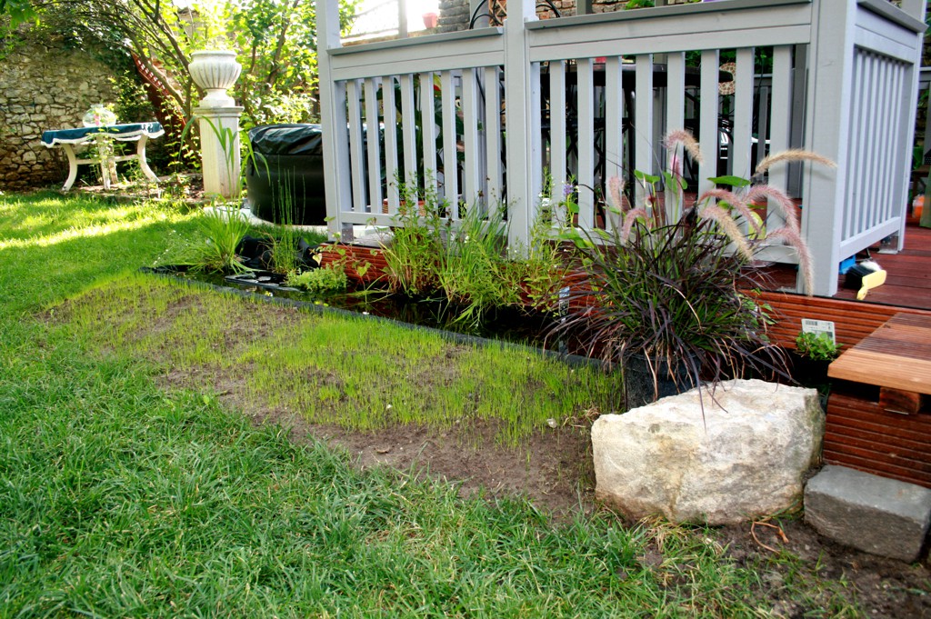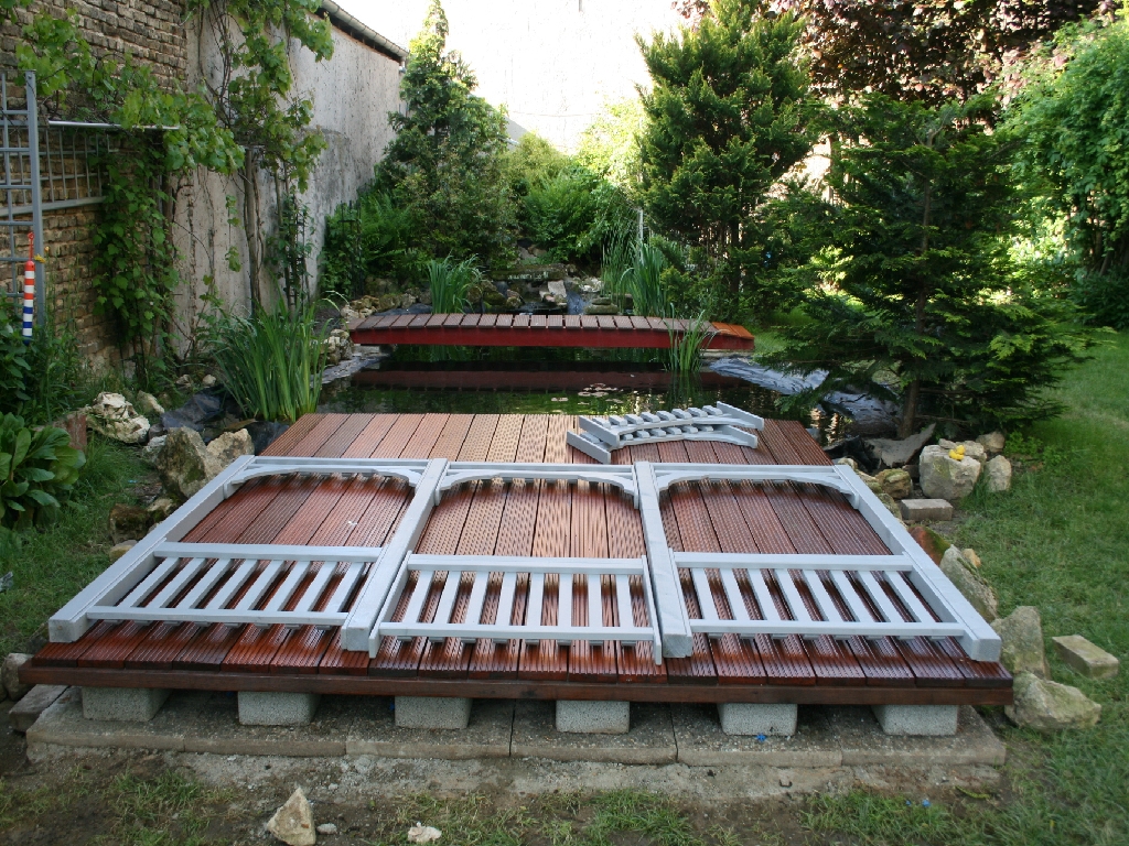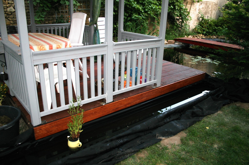 Diese Seite zeigt den aktuellen Stand des Aufbaus unseres Pavillons im Garten. Mit dem Pavillon erfolgt eine Vergrößerung der Teichfläche sowie der Bau einer Seeterasse als Basis für den Pavillon. Der Pavillon soll mit einem Wassergraben umgeben werden.