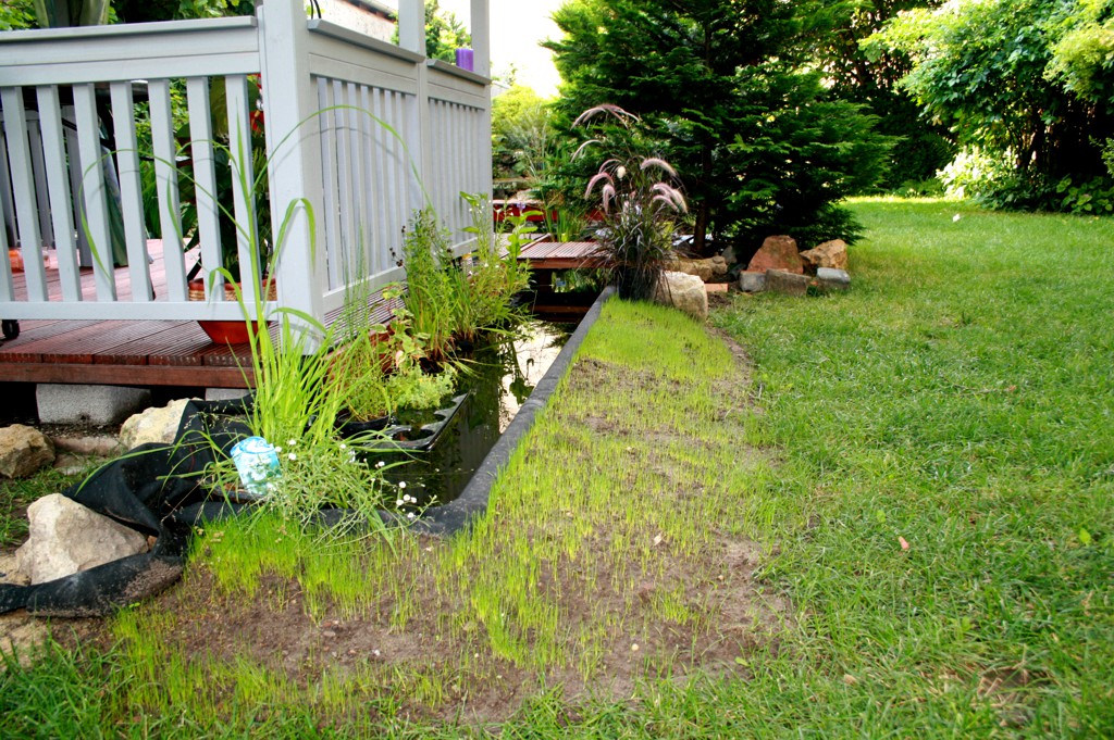Der Wassergraben wird mit Erde umsäumt und Gras gesäht
