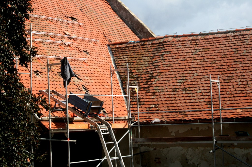 Tag 2: Das Trägersystem wird auf dem Nebengebäude montiert
